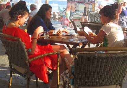 Spying on the tourists.. . Ladies who eat ice cream, smile. Ladies who play cards and smoke cigarettes, are very serious.