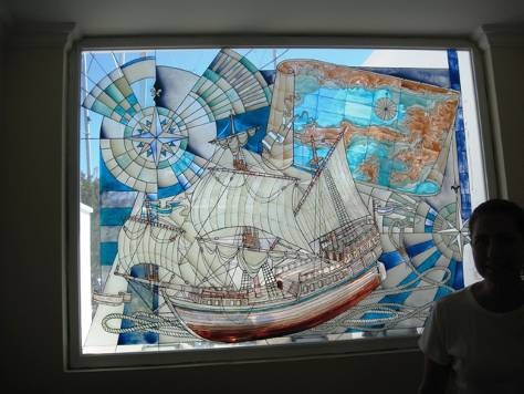 The beautiful painted window in the Yat Lift office and in shadow, Nurten.